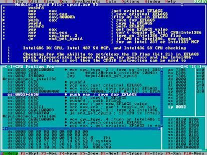 Fitur debugger memiliki nyaman single-langkah dan fasilitas breakpoint bersyarat. perakitan dapat ditulis langsung melalui aplikasi ini.