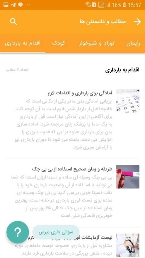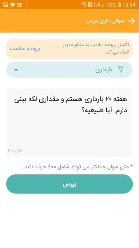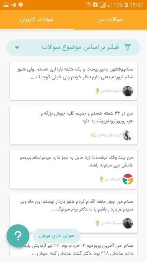سوالی داشته باشید می تونید از متخصصین ما در یک زن بپرسید تا پاسخ بدن. پس از پاسخ دادن، شما می تونید جواب رو در اپلیکیشن ببینید.اگر فرصت ندارید تا منتظر پاسخ متخصص بمونید می تونید از امکان تماس صوتی با متخصص استفاده کنید.