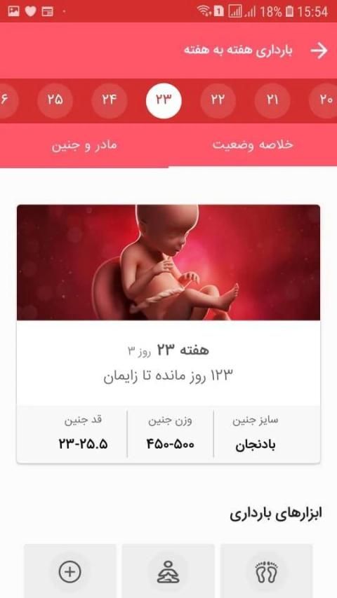 در اپلیکیشن یک زن شما اطلاعاتی مانند قد و وزن و سن خود رو وارد می کنید و اینکه آیا باردار هستید یا خیر. در تقویم قاعدگی و یا بارداری آخرین وضعیت خودتون رو مشاهده می کنید. به طور مثال اگر در هفته 20 بارداری هستید، اطلاعات مربوط به این هفته رو دریافت می کنید.