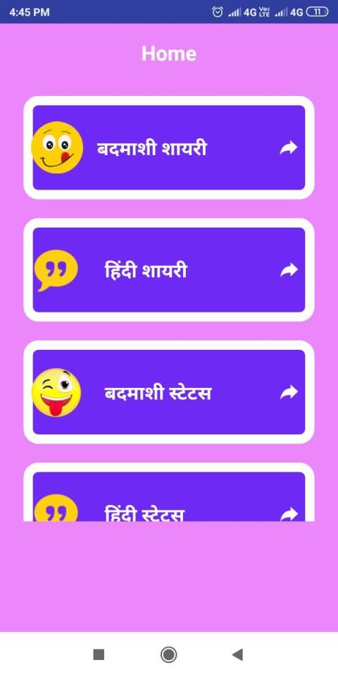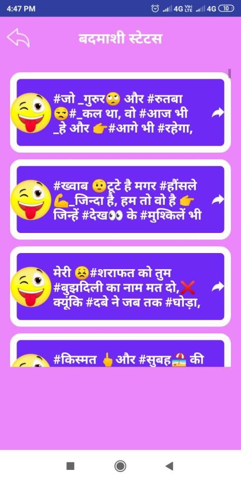 This App contains all kinds of Badmashi Shayari Hindi & Badmashi Status Hindi in both hindi & english.