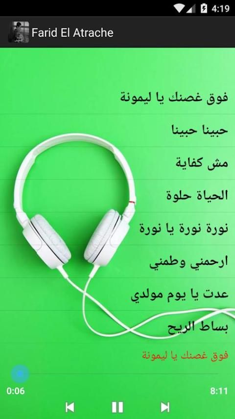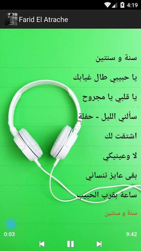 Aplikasi Anda dapat mendengarkan semua lagu Farid al-Atrash dalam format mp3 dan suara berkualitas tinggi.