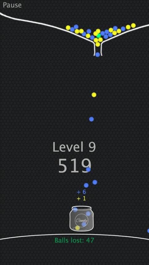 100 Balls + sederhana. Anda mendapatkan 100 bola dan 8 botol. Jatuhkan bola ke dalam stoples. Bola berwarna mendapatkan lebih banyak poin. Menurunkan stoples atau kehilangan 100 bola dan permainan berakhir.