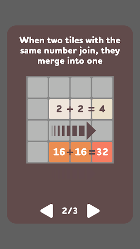 Geser untuk memindahkan semua ubin.Ketika dua ubin dengan nomor yang sama bertemu, mereka bergabung menjadi satu.