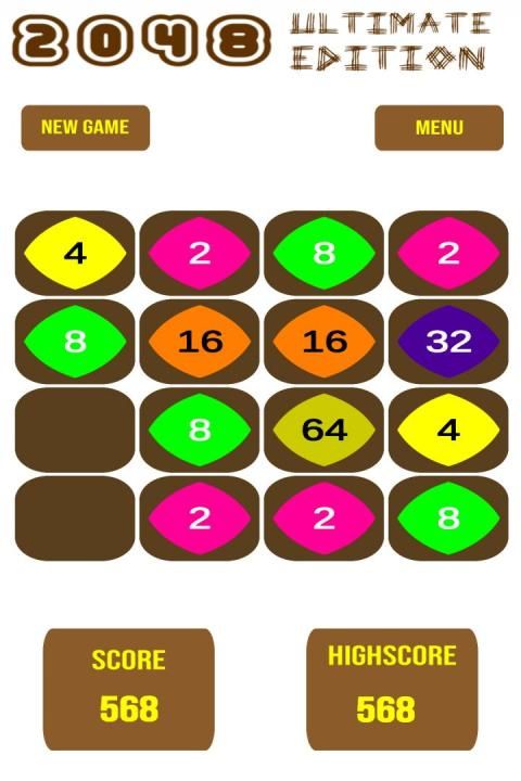 2048 permainan puzzle dengan warna-warna baru dan benar-benar versi iklan gratis.