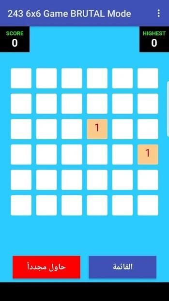 Brutal Mode: You are a genius if you can do it!!! You have to reach the tile 2187, which means you have to join three tiles with number 729 together.