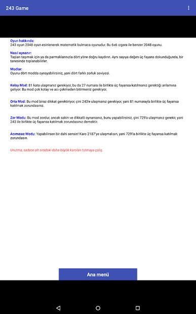 Hard Mode: Mode ini sulit tetapi Anda dapat melakukannya jika Anda tetap tenang dan bermain dengan hati-hati, Anda harus mencapai ubin 729, yang berarti Anda harus bergabung dengan tiga ubin dengan nomor 243 bersama-sama.