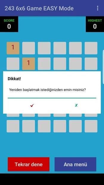 Hard Mode: This mode is hard but you can do it if you stay calm and play carefully, you have to reach the tile 729, which means you have to join three tiles with number 243 together.
