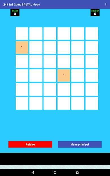 Mode Brutal: Anda jenius jika Anda bisa melakukannya !!! Anda harus mencapai ubin 2187, yang berarti Anda harus bergabung dengan tiga ubin dengan nomor 729 bersama.