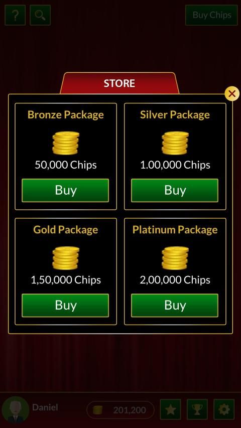 The app offers a virtual casino like environment.You can chat with other players in real time through the live in-game chat window and discuss new tips and tricks.You have the liberty to even place live bets on cricket matches in order to multiply your chips. Once you install the app, you get hundreds of free chips.