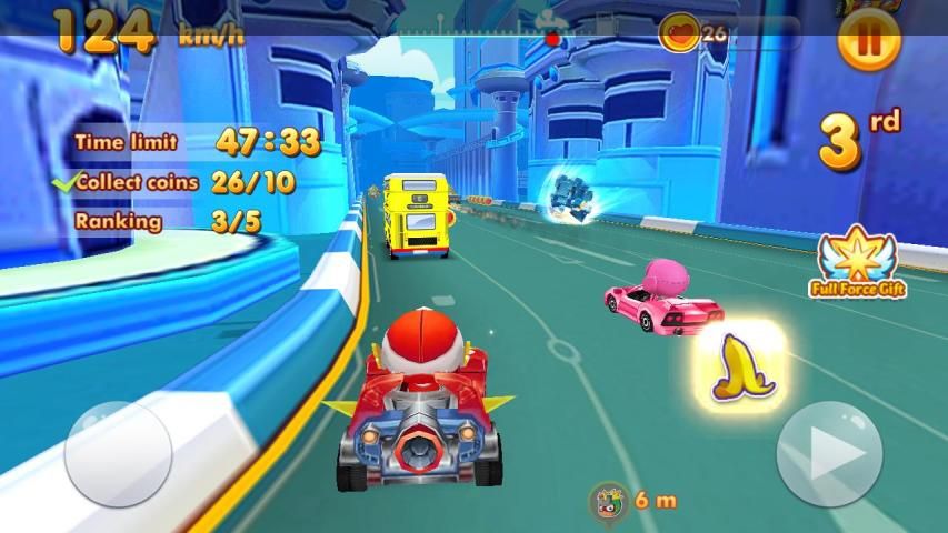 Choose your favourite character and beat them all. Collect a lot of coin so you can upgrade your car to make more faster.