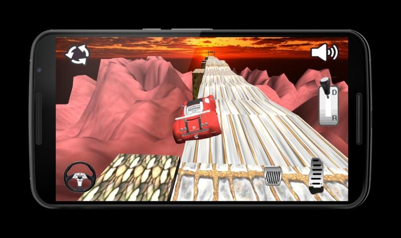 this game contain 4 important things: an accelerator and a brake pedal in the right of the screen, a Steering wheel in the lift also a transmission speed for moving forward or backward