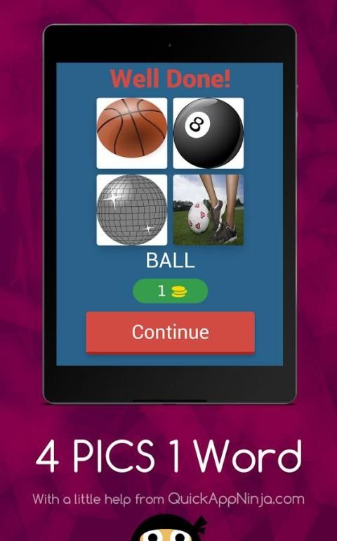 Dapatkah Anda menebak kata yang kita cari untuk membuka tingkat? 4 gambar memiliki sesuatu yang umum dan terserah kepada Anda untuk mencari tahu apa kata itu. 4 PIC 1 adalah permainan kata menyenangkan yang merupakan tantangan yang benar untuk semua orang dan Anda dapat bermain di Android Anda.