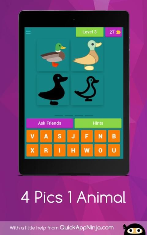 4 Pics 1 Animal adalah semacam menebak kuis gambar. Anda harus menebak nama 4 Pics yang menunjukkan di layar ponsel Anda.