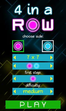 • Creative board design and glow graphic sets. 4 in a Row features 3 difficulty levels, first move options, board size.