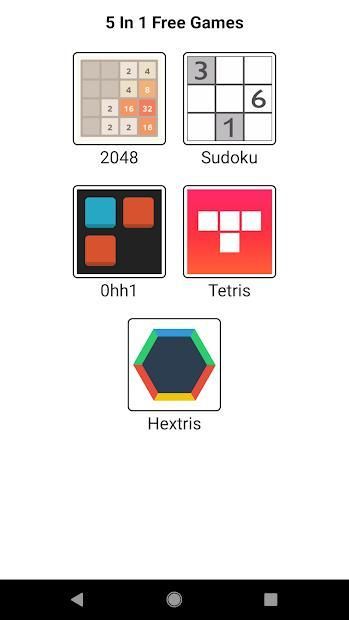 5 In 1 Free Games - Games Collection - 2048, Sudoku, 0hh1, Tetris, and Hextris