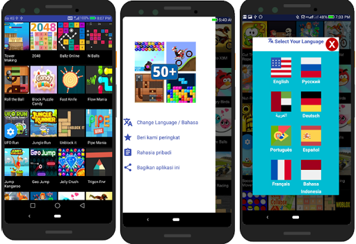 Aplikasi ini berisi banyak game populer di ini. Anda tidak perlu menginstal banyak game di ponsel. Instal game yang satu ini dan dapatkan lebih dari 50 di dalamnya. Ini berisi banyak jenis permainan seperti: arcade, menembak, olahraga, petualangan, permainan cewek dan gim multipemain.