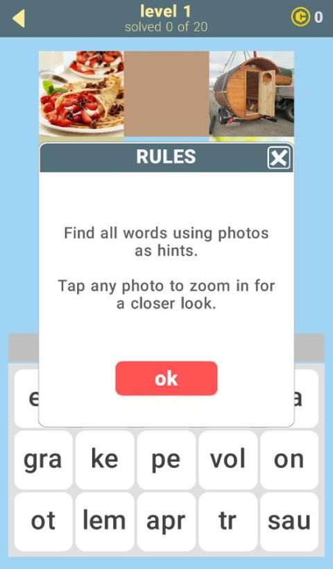 Dua kata per foto. 20 kata per tingkat. 580 kata dalam permainan. Anda dapat menemukan semua dari mereka? Kadang-kadang Anda harus berpikir di luar jelas. Semoga berhasil!