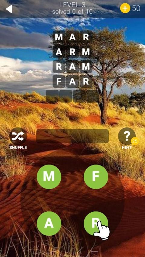 Di setiap level hubungkan huruf-huruf dan temukan semua kata.