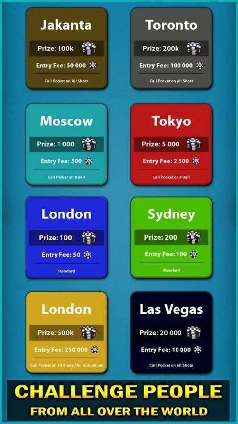 Play with friends! Play with Legends. Play the hit 8 Ball Billiards Pool game on your mobile and become the best! Just challenge your friends in Pool anytime and anywhere. Refine your skills in the practice arena, take on the world in 1-vs-1 matches, or enter tournaments to win trophies and exclusive cues! Fully featured ball control system allowing back spin, top spin, left spin and etc.