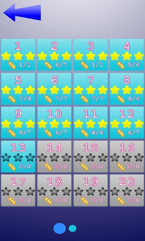 Setiap tingkat memiliki bintang 3. Mengumpulkan bintang sebanyak mungkin dan menggunakan makanan setidaknya merupakan tantangan sulit bagi Anda.