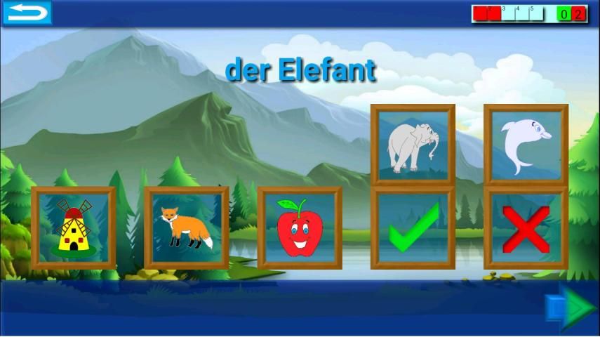 Pada "P" Anda harus menemukan "Panda" dan "Singa" Anda perlu hak "L". Anda bahkan dapat nama, angka dan huruf mendengar ketika Anda berbalik kartu.