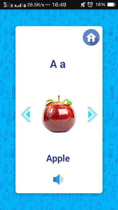 - Geser ke kiri / kanan untuk berpindah dari satu kartu ke kartu berikutnya. Tekan ikon speaker untuk mengulangi sulih suara.