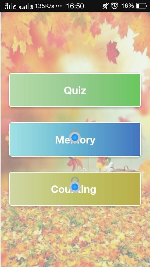 - Pilih dari 3 kegiatan yang berbeda: Kuis, Permainan Memori dan Menghitung.