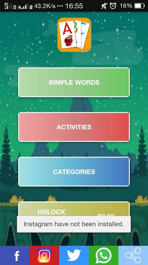 Aplikasi seluler ABC FlashCards for Kids ini cocok untuk anak usia 1-3 yang mulai mempelajari kata-kata dasar. Aplikasi ini juga mengandung kata-kata lebih lanjut yang dapat dibuka kuncinya.