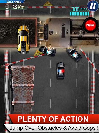 Use NOS to fire up the engine and get an instant boost. Hit up the jumping ramps to jump over obstacles and Train Crossings. keep an eye on the road side Repair Centres to repair the damages and maintain a fair distance from the fast chasing cop cars.