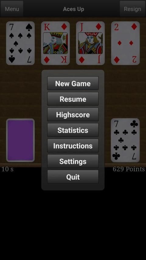 Aces Up (menyenangkan idiot, sekali dalam seumur hidup, ace tetap) adalah permainan kartu soliter klasik dan menyenangkan di mana Anda harus menghilangkan kartu sebanyak mungkin dari meja kartu. Dalam kesabaran sempurna bermain, Anda hanya memiliki sisa di meja kartu as. Aces up mudah untuk bermain, tapi sulit untuk menyelesaikan.