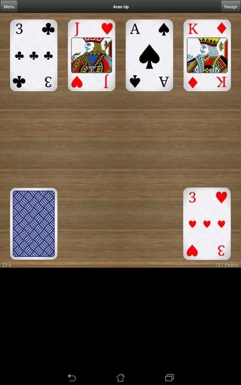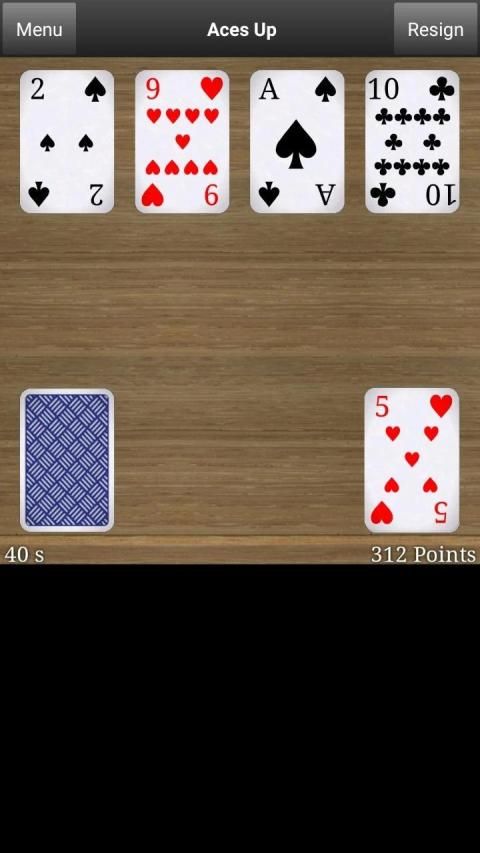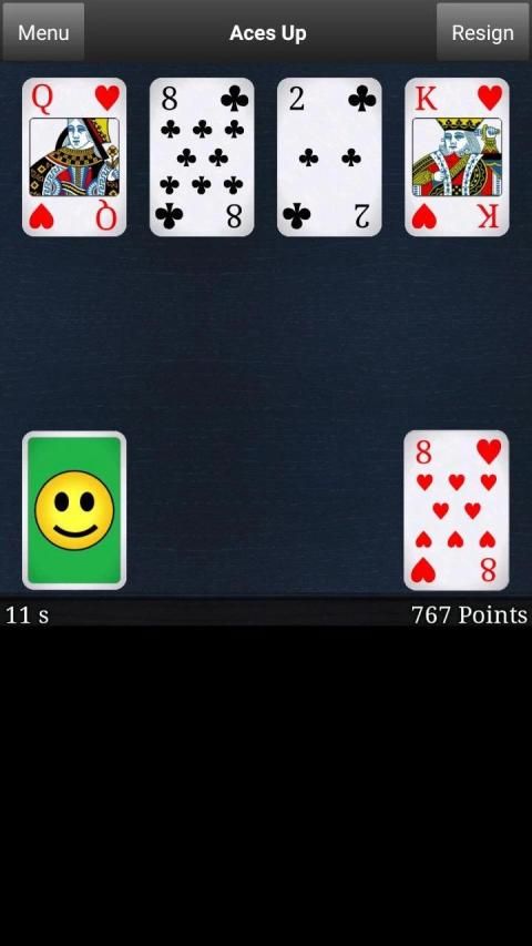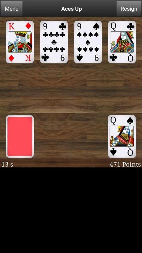 Aces Up (idiot's delight, once in a lifetime, aces remain) is a classical and fun solitary card game where you should eliminate as many cards as possible from the card table. In a perfectly played patience, you only have the aces remaining on the card table. Aces up is easy to play, but hard to complete.