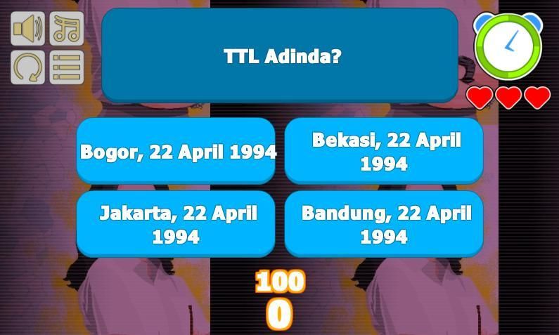 * Dalam game ini ada 51 pertanyaan berupa fakta-fakta dan biodata Adinda Azani.