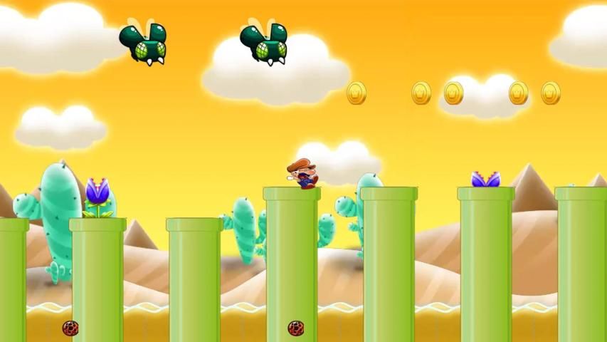 Petualangan Jungle Boy berjalan dan melompat di seluruh platform dan di atas musuh di tingkat bertema.