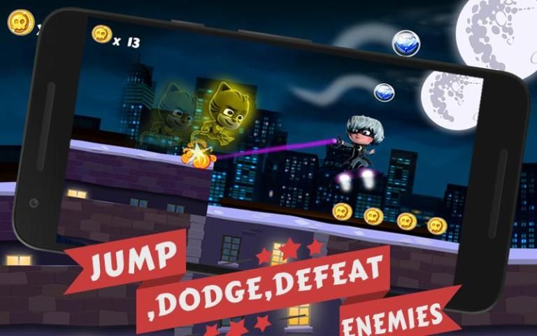 Berlari, melompat, dan bangkit pada tanaman merambat seperti Anda membantu Catboy menyelamatkan timnya pahlawan game super mudah untuk bermain hanya satu jempol cukup untuk mengontrol permainan.