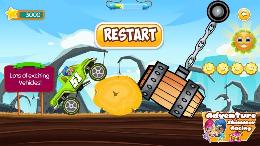 Mengumpulkan koin untuk mendapatkan kredit dan membeli mobil khusus Shimmer dengan 300 koin. Ketika Anda mulai putri ini shimmer game petualangan Anda harus menghindari rintangan untuk menjadi aman dan membuka tingkat petualangan baru. (500 tingkat Pertama, 1000 Tingkat II, 1200 tingkat ketiga ...).