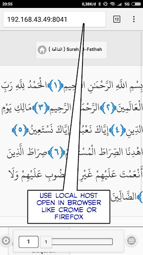5. Server local quran sehingga anda bisa membuka alquran di browser seperti crome atau firefox, yg terhubung dengan device anda atau dalam satu jaringan.