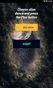 Tarian alien Aplikasi ini menunjukkan kartun hijau menari asing ke hip hop rap lagu mengerikan.