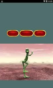 The alien dance The app shows a cartoon green alien dancing to an awful hip hop rap song.