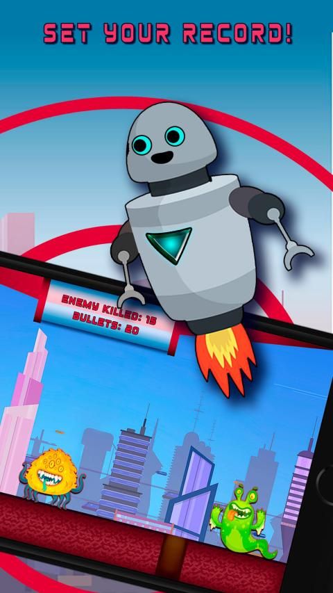 Play as a brave robot who has taken on the task of freeing the world from enemies from another planet. Shoot them from the ballast, keep track of the amount of ammunition and dodge enemies if the supply of cartridges is at zero! Enjoy colorful graphics and thoughtful animation, as well as simple gameplay in the game, made in a Sci-Fi setting. If you like to dream about the future and are ready to save the planet - then this game is for you!