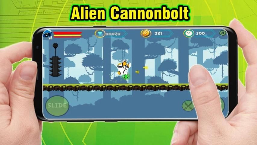 Buktikan keahlian Anda dalam aksi ini, meriam bintang alien perang cannonbolt dan gunakan menembak cannonbolt atau naik kecepatan menggunakan ramuan kecepatan xlr8 untuk melewati rintangan dan mengalahkan musuh alien dengan keras sebagai kekuatan manusia dari sepuluh pelindung!