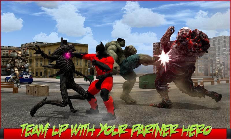 Bat Aliens War puts you in the middle of the war zone where the aliens have attacked the city and both you heroes were dispatched from your hero league toward the city to give justice and kill the aliens. Bat aliens war is the amazing new alien vs. hero or heroes vs. aliens simulator. Fight aliens in a battle and defeat multiple aliens alone and tag up with your other superhero friend. Go to missions and go as the hero you like. You can play with both superheroes. Fight crime and punch enemies using the ultra-human strength of the incredible hero. Fight and knock out multiple enemies playing as the bat hero master of combat.