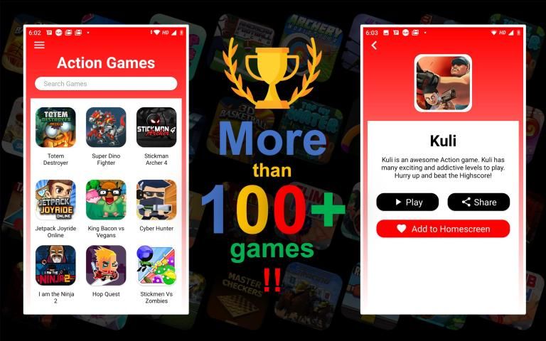 Discover over 300 +action games collection in just one app. All games are Instant Games, so no need to install any game on the phone. It saves storage and data. We present great graphics and an easy-to-use app experience.