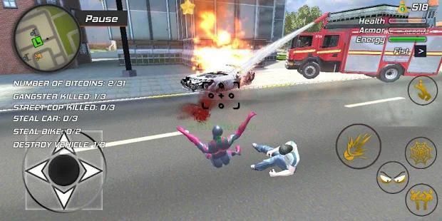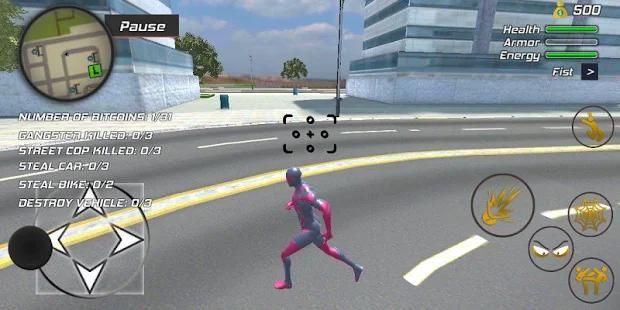 Karakter Anda akan terbang laba-laba pahlawan dan Anda harus menyelamatkan kota dari snatchers mobil, gangster mafia, teroris, mutan dan untuk menyelamatkan Childs kota futuristik Anda dari musuh mafia dan untuk mengakhiri tingkat kejahatan yang ekstrim.