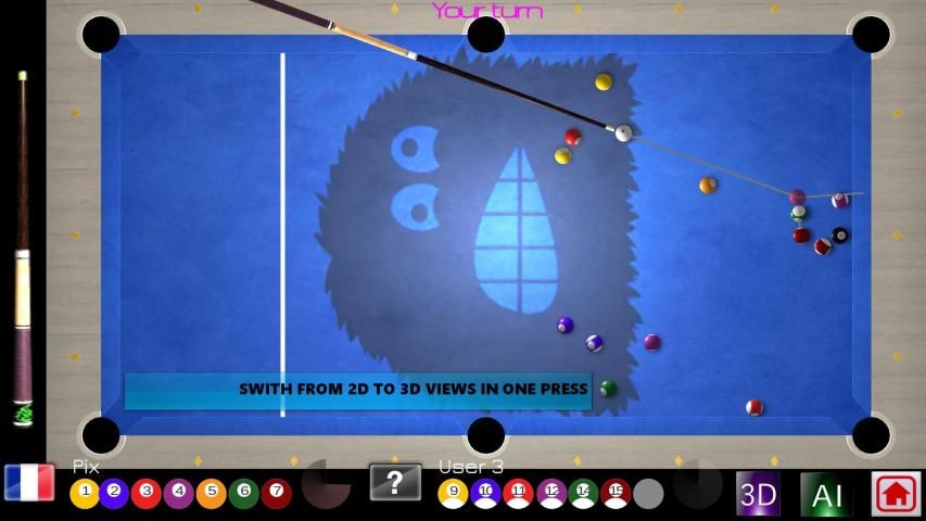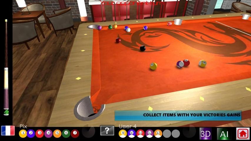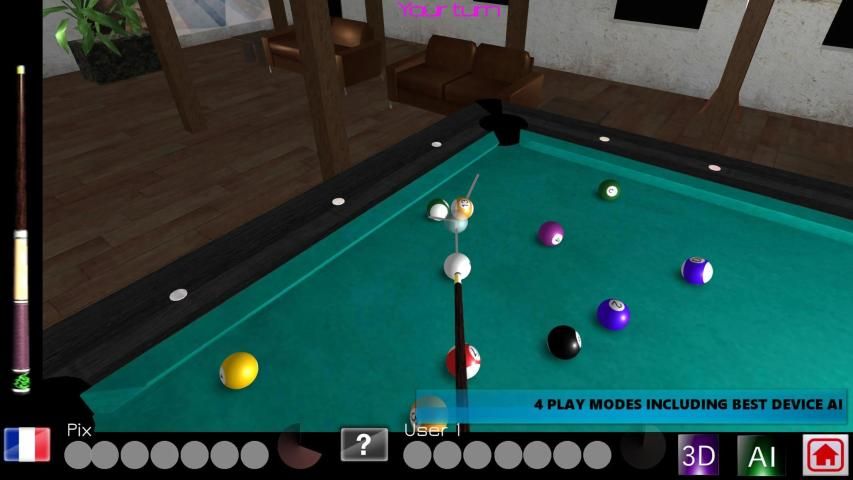 Controls are designed to be intuitive and simple but yet allow you show off all your billards techniques including back spin, top spin, left/right spins and more.