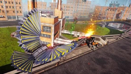 Fly Over Huge City Building Rooftop to Rescue Citizens From Rival Robot Attacks