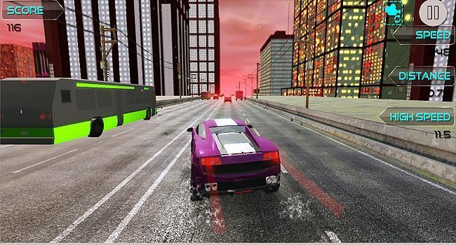 Neon Purple Lamborghini di jalan-jalan raya yang sangat besar. Belok Lamborghini kiri dan kanan dengan menekan kiri, tombol kanan, juga menggunakan modus miring.