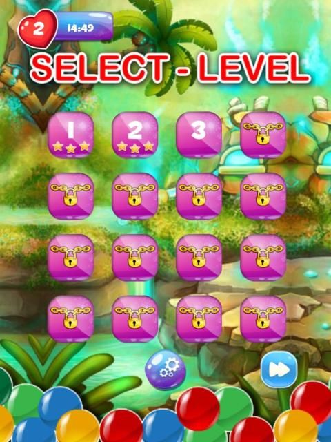 Hapus semua gelembung di layar untuk tingkat atas, dan mencoba untuk mendapatkan 3 bintang di setiap tingkat.