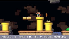 Super Angelo is a platform game in the style of Mario. Run and jump through levels, collect power ups, destroy enemies and rescue the princess!