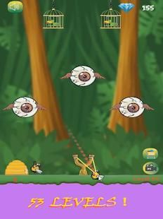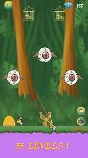 The Angry Monsters is to knock down the Cage using a slingshot and escape parrots from MOnsters.