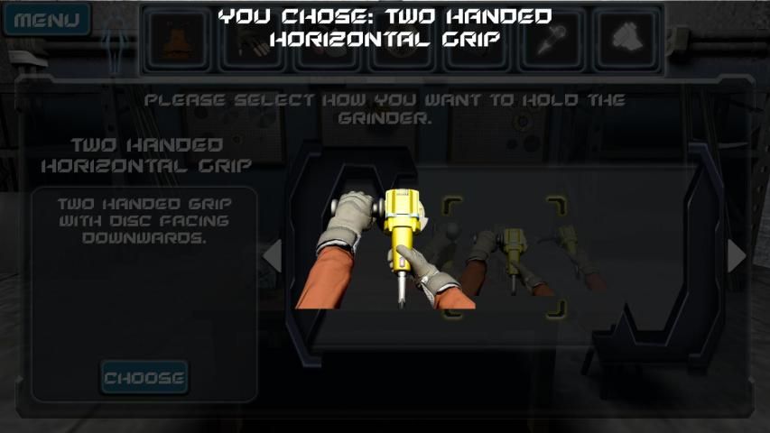 Aplikasi ini adalah versi gamified untuk operasi Angle Grinder dengan peralatan keselamatan lengkap.